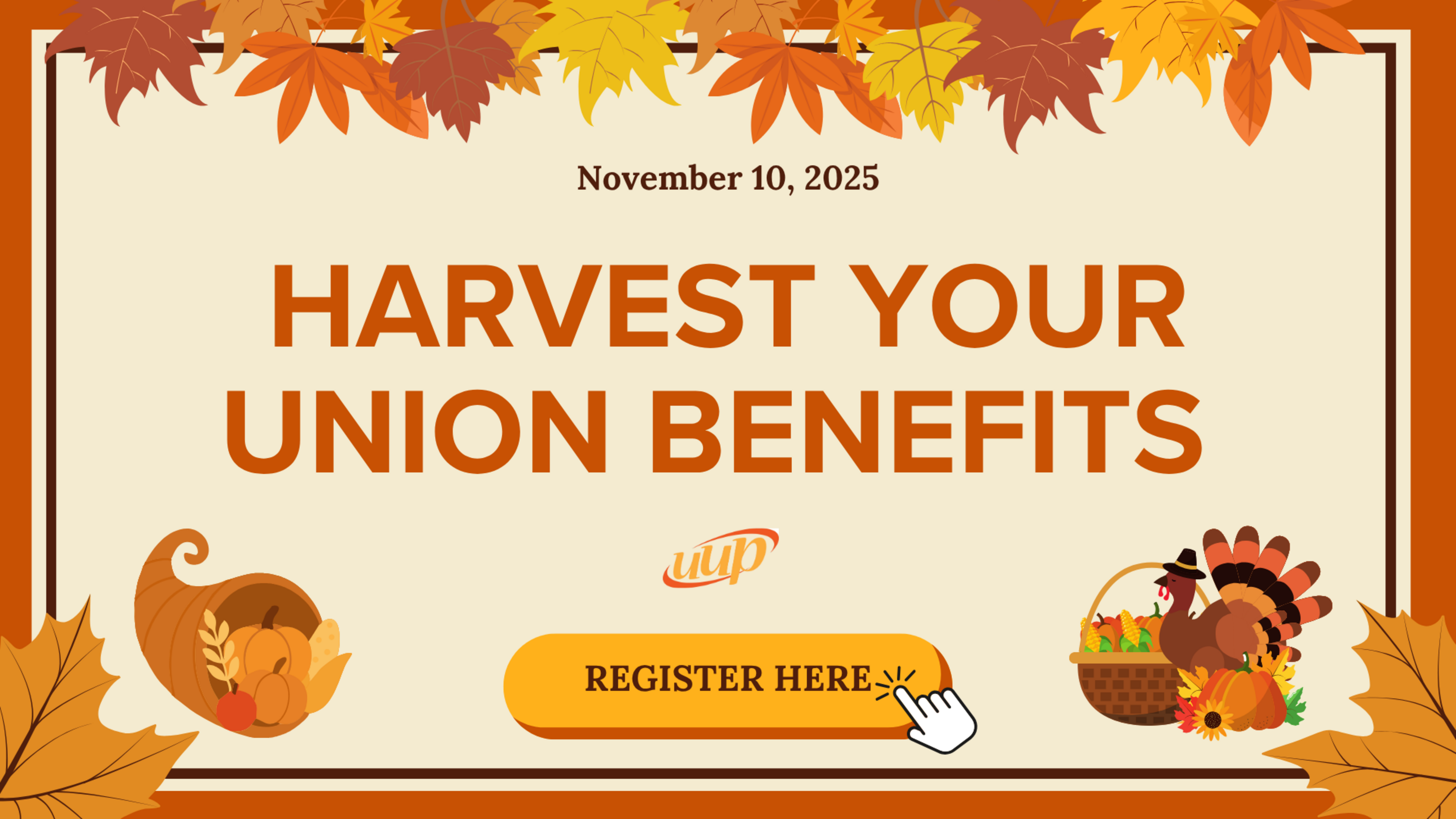 “Harvest Your Union Benefits” UUP’s Know Your Negotiated Benefits webinar is scheduled for Monday, November 10 2025, at 12:00pm.